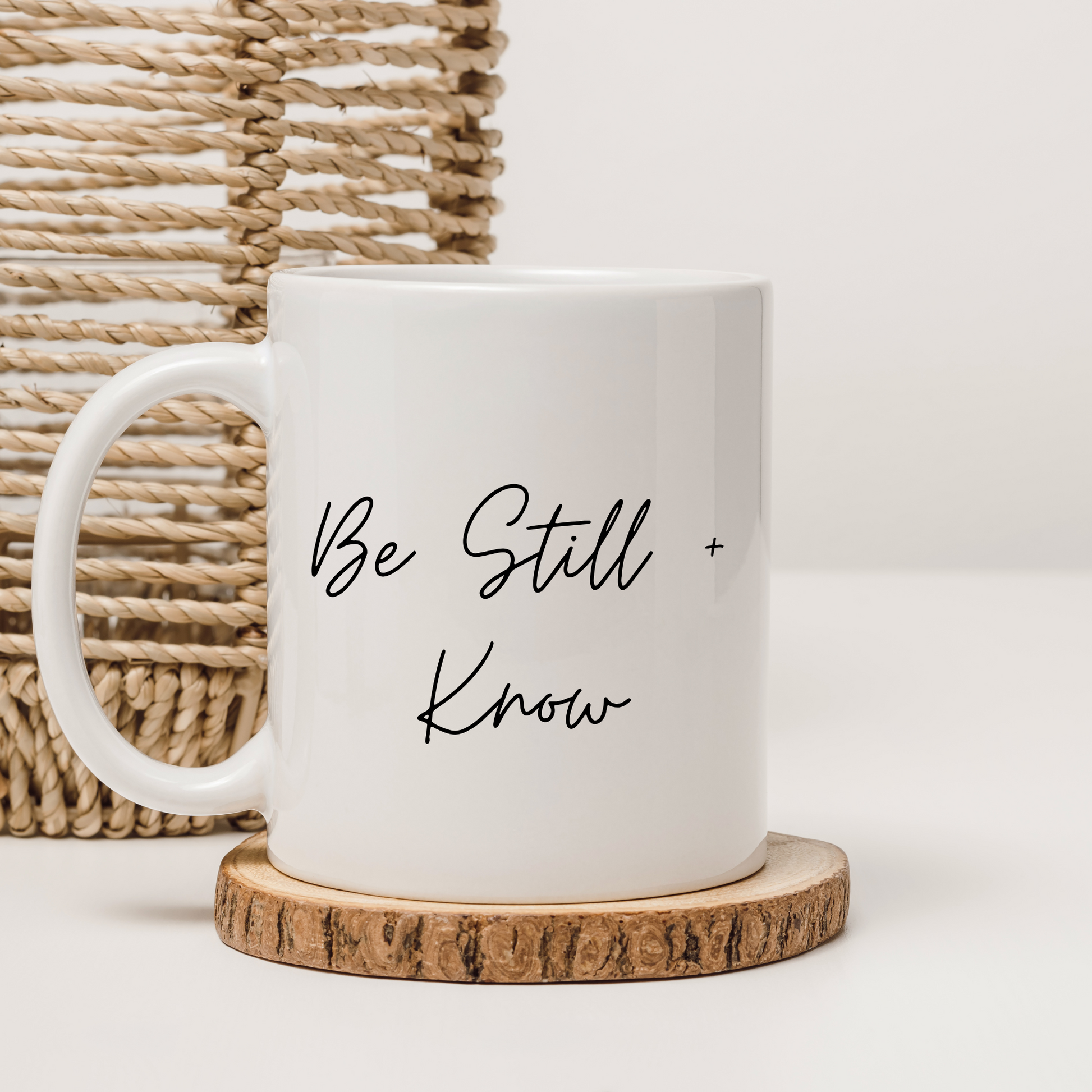 Start your day with a reminder of God’s peace with our "Be Still + Know" mug. This 12 oz ceramic mug is perfect for sipping your morning coffee, tea, or cocoa while reflecting on Psalm 46:10. Featuring a simple yet elegant design, it’s a daily encouragement to pause, trust, and rest in His presence.