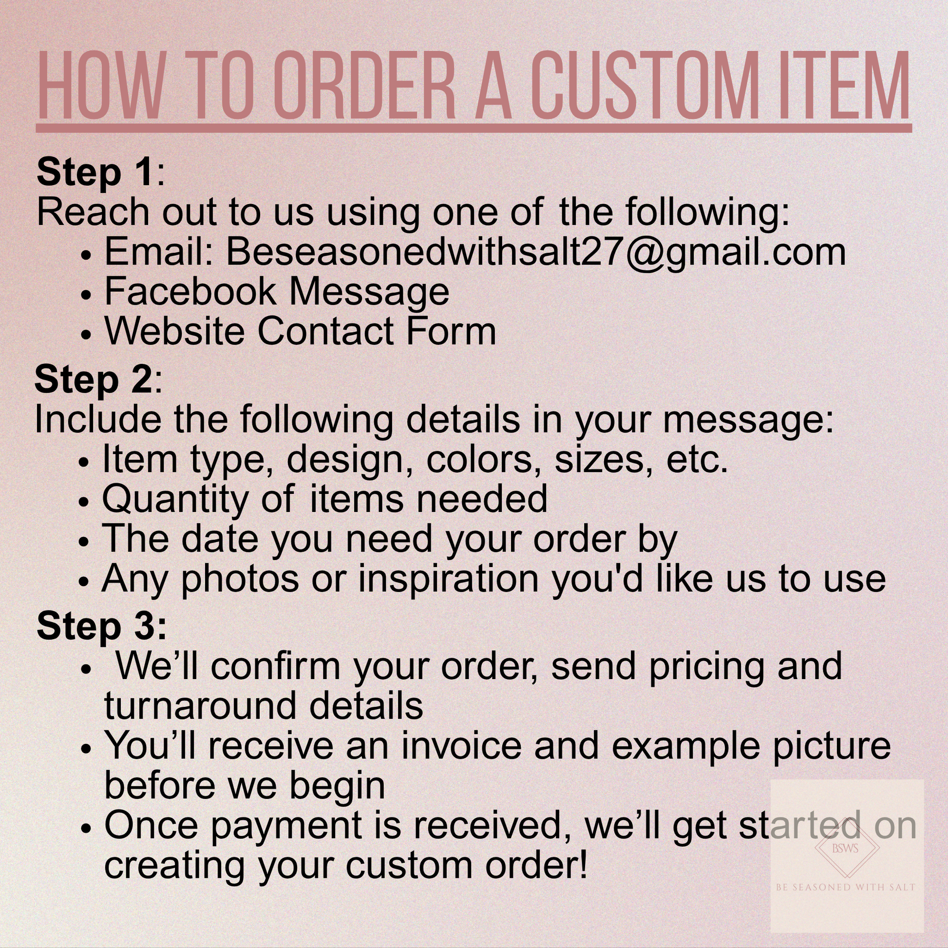 Have an idea in mind? We’ll bring it to life with faith, style, and quality. Message us to get started on your custom order today!